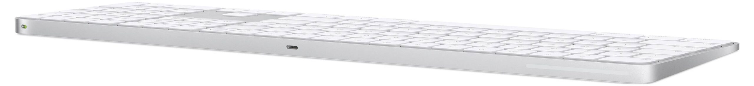 Apple Magic Keyboard mit Touch ID und Ziffernblock für Mac Modelle mit Apple Chip – Weiß Das Magic Keyboard gibt es mit Touch ID. Damit ermöglicht es eine schnelle und einfache Authentifizierung für sichere Logins und Einkäufe. Das Magic Keyboard mit Touch ID und Ziffernblock macht präzises Tippen besonders angenehm und leicht. Es hat ein erweitertes Layout, Navigationstasten für schnelles Scrollen in Dokumenten und normalgroße Pfeiltasten, die toll fürs Gamen sind. Der Ziffernblock ist außerdem ideal für Tabellen und Finanzanwendungen. Es ist kabellos und hat eine aufladbare Batterie, mit der du es etwa einen 1 Monat oder länger verwenden kannst, bevor es aufgeladen werden muss. (1) Es koppelt sich automatisch mit deinem Mac und ist direkt einsatzbereit. Und es kommt mit einem gewebten USB‑C auf Lightning Kabel, das du zum Laden und Koppeln über einen USB‑C Anschluss mit dem Mac verbinden kannst.