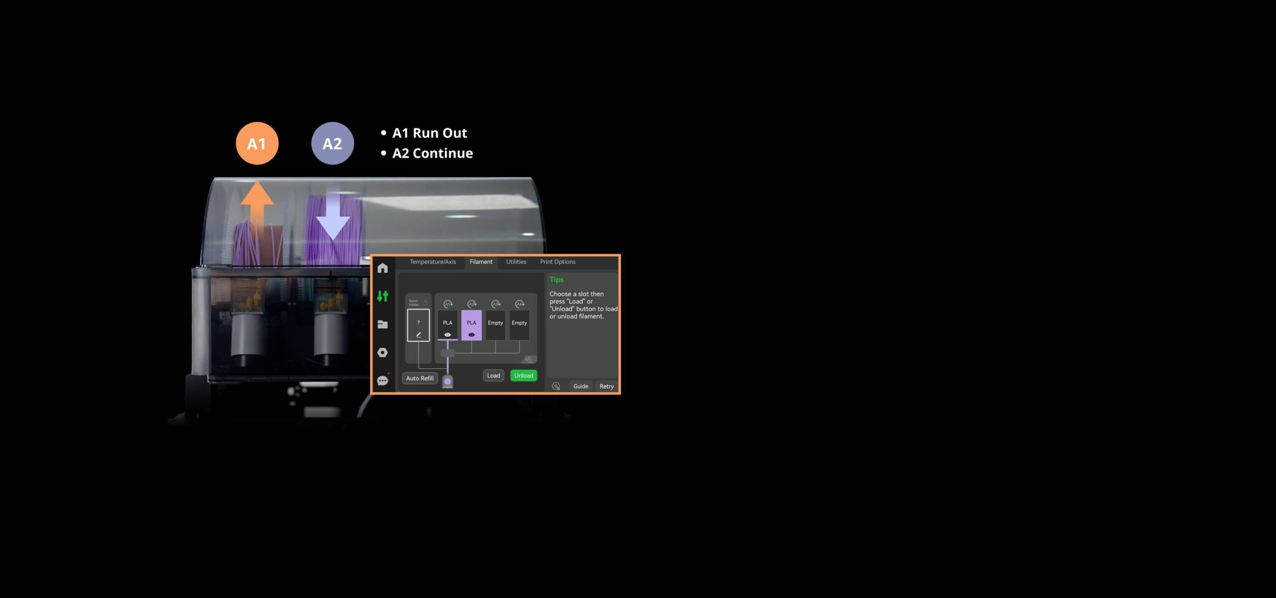 • Intelligente Filament-Verwaltung