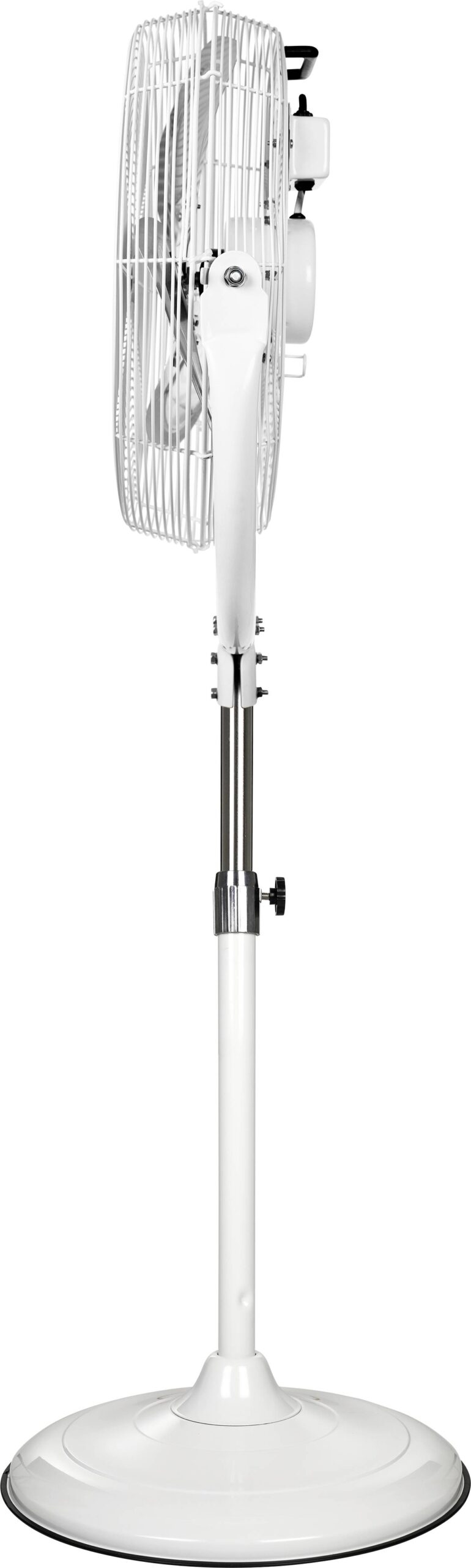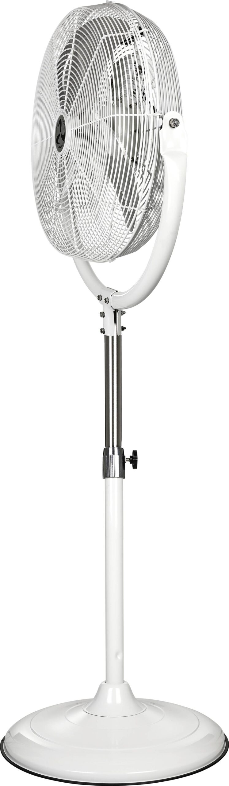 Abmessung und technische Daten 220 – 240 Volt / 50 Hertz Schutzgitter, Gehäuse, Rahmen und Standfuß mit doppelter Korrosionsschutzlackierung, Farbe weiß Flügelrad aus Aluminium Korbneigung vertikal 130° einstellbar Stabiler, kippsicherer Standfuß 3 Geschwindigkeitsstufen mittels gekapseltem Druckschalter Durchmesser Korb: 49,5 cm Durchmesser Flügelrad: 45,5 cm Durchmesser Standfuß: 48,5 cm Höhe verstellbar: 1,215 m bis 1,5 m Max. Drehzahl: 1250 U/min Max. Motorleistung: 120 Watt Schalldruck (Lp-3m): 49,9 dB(A) Schallleistung (Lw): 72,0 dB(A) Luftmenge: 10700 m³/h Effizienz Luftstrom: 1,45 m³/min/W IP44 Spritzwasserschutz, Schutzklasse I Gewicht: 14,8 kg Tragegriff an der Rückseite des Schutzgitters Halter zur Festinstallation an der Wand im Lieferumfang enthalten Lieferung mit 2,5 m Zuleitung HO5RN-F G 3 x 1,0 mm², mit Typ F Schukostecker IPX4 zertifiziert für gewerbliche Verwendung nach Maschinenrichtline 2006/42/EC Teil 1