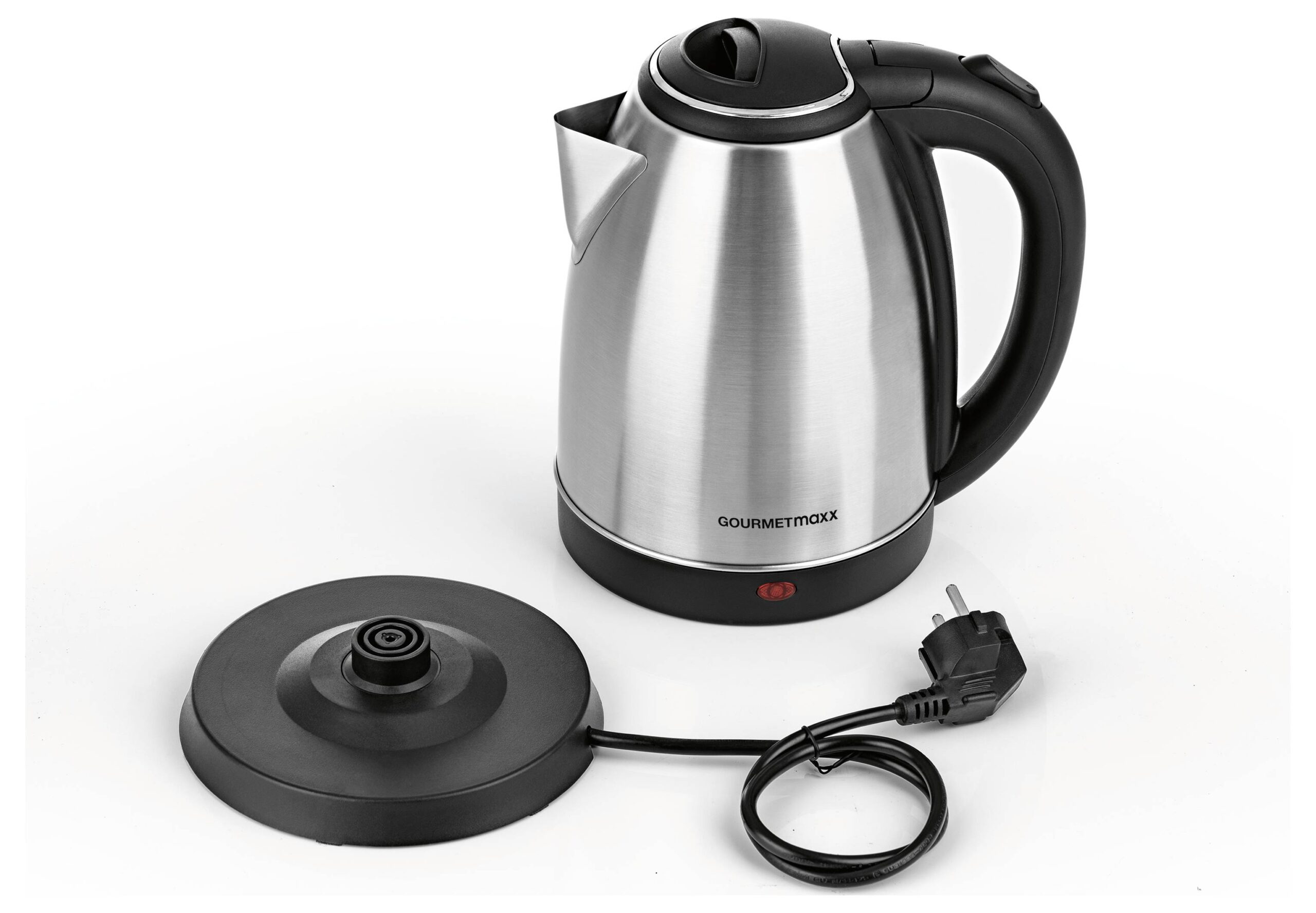 GourmetMaxx Wasserkocher schnurlos Edelstahl, Schwarz Fassungsvermögen: 1.8