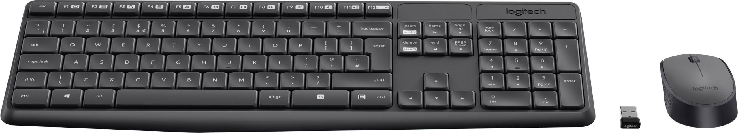 ROBUST. EINFACH. KABELLOS. Eine einfache Plug&Play-Tastatur und eine Maus mit einer zuverlässigen kabellosen Verbindung mit einer Reichweite von bis zu 10 Metern sowie einem gemeinsamen winzigen USB-Empfänger (128-Bit-AES-Verschlüsselung zwischen Geräten und Empfänger). Lästiges Pairing und Softwareinstallation entfallen. Tippen Sie ganz bequem auf einer Tastatur mit vertrauter Tastenanordnung in Standardgröße, Pfeiltasten, Nummernblock und leichtem Zugriff auf die 15 Sondertasten. Genießen Sie die lange Batterielebensdauer: 36 Monate bei der Tastatur und 12 Monate bei der Maus*. Dank ihres stabilen und spritzwassergeschützten Designs, der speziell gegen Verblassen behandelten Tasten und stabilen ausklappbaren Füße ist die MK235 Combo gemacht für die Ewigkeit. Features: · Robust. Einfach. Kabellos. · Tastatur in Standardgröße · Batterielaufzeit: 36 Monate für Tastatur, 12 Monate für Maus · Spritzwassergeschütztes Design, Strapazierfähige Tasten, Stabile ausklappbare Füße. · 10 Meter kabellose Reichweite* * Batterielebensdauer und kabellose Reichweite sind von Nutzungs- und Umgebungsbedingungen abhängig.
