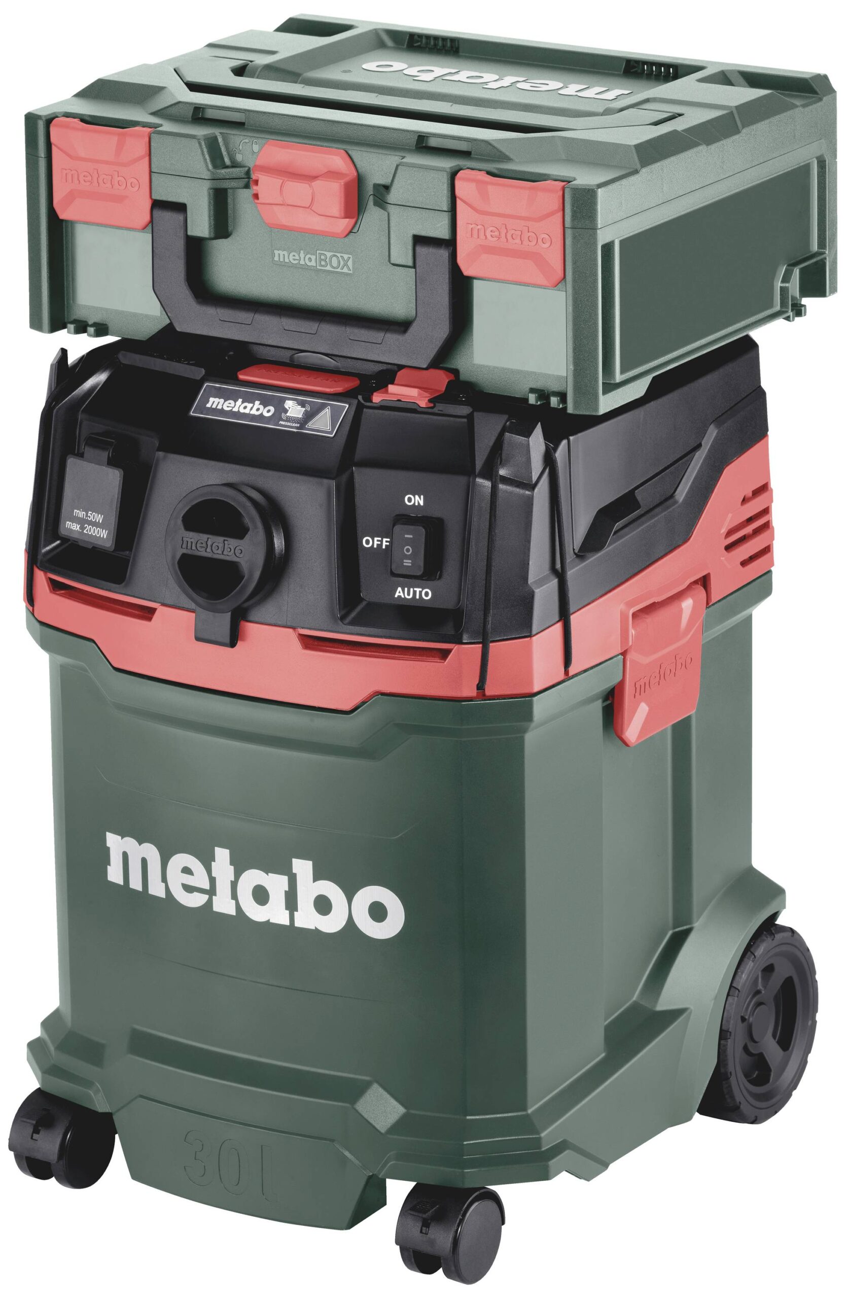 Kompakter, vielseitig einsetzbarer Sauger der Staubklasse H mit integrierter Filterabreinigung. Schnelles Koppeln von metaBOXen mit Werkzeug und Zubehör auf dem Sauger für einfachen Standortwechsel.