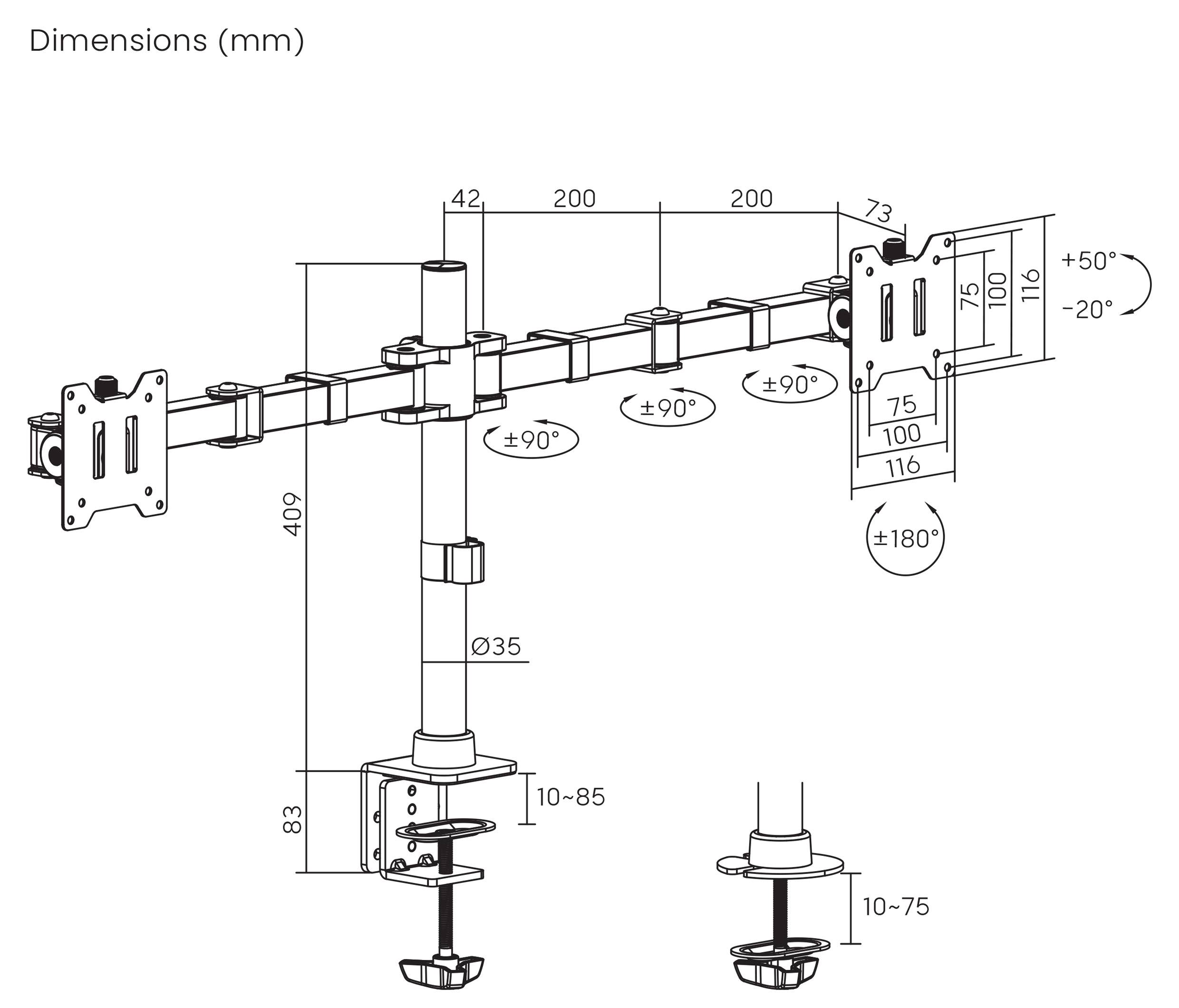 • Gelenkarm für zwei monitore in schwerer Ausführung