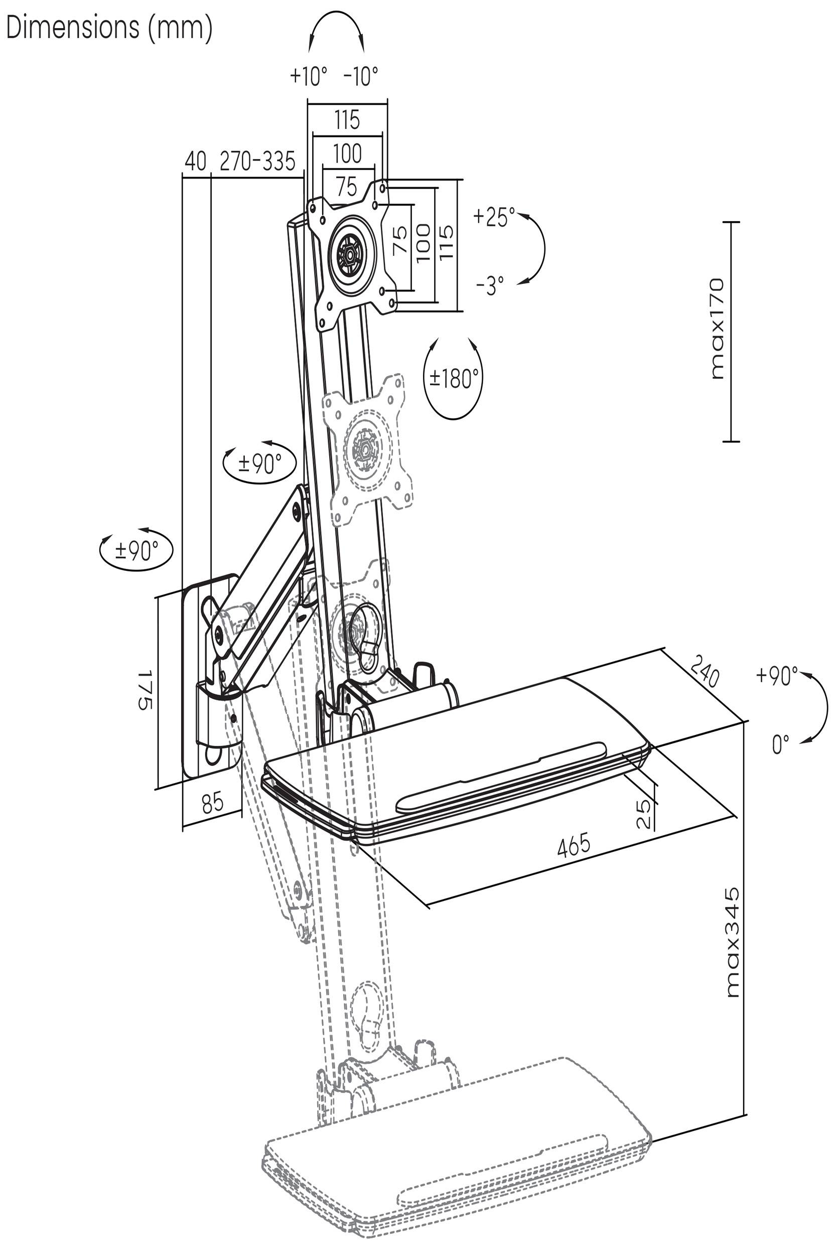 SpeaKa Professional SP-MM-950 Wandmontage-Halterung für Arbeitsplatz mit 43,2 cm (17″“) – 88 cm (35″“), höhenverstellbar, schwenk- und neigbar sowie einer Halterung für Tastatur und Maus.